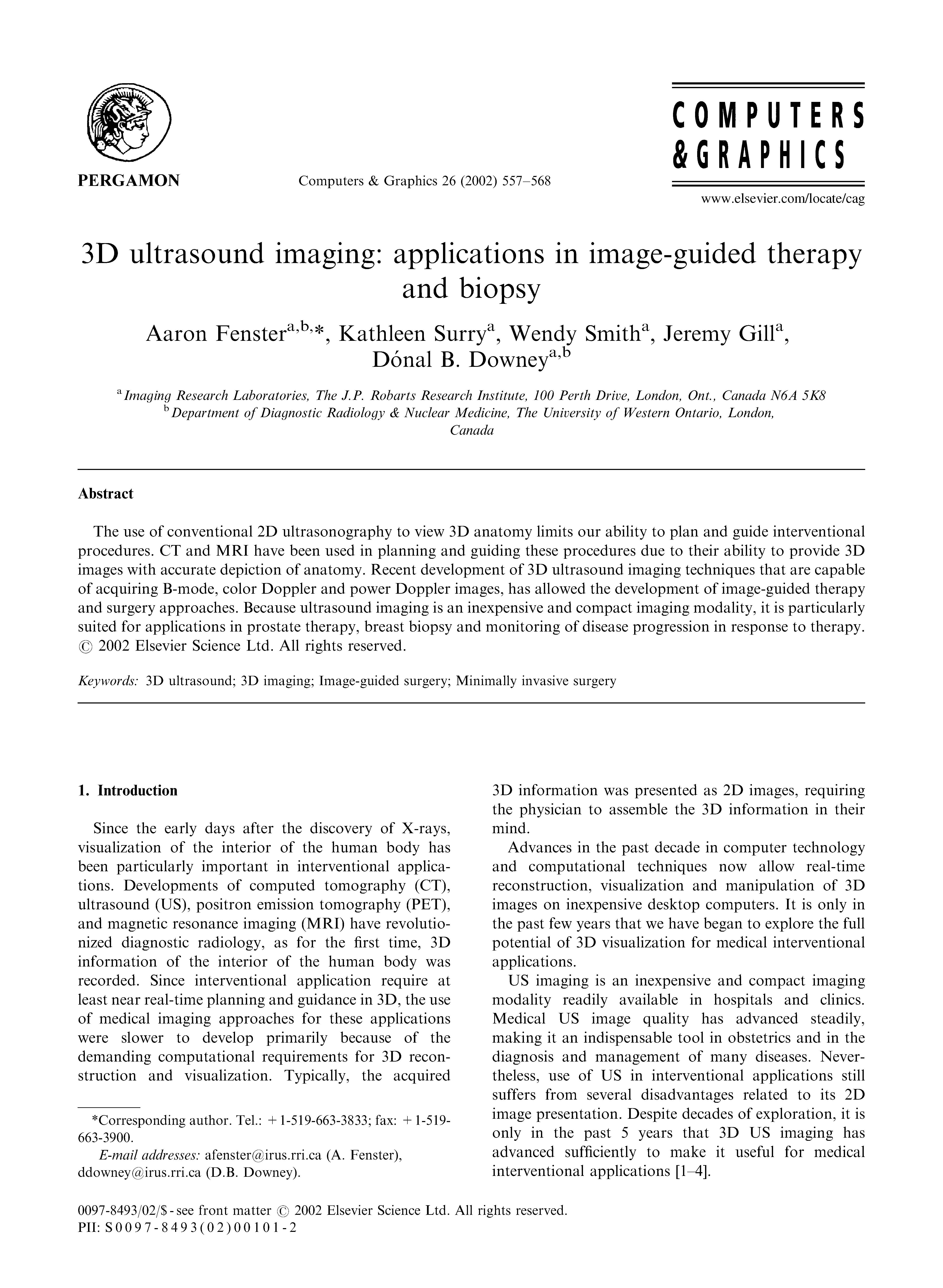 The use of conventional 2D ultrasonography to view 3D anatomy limits our ability to plan and guide interventional procedures. CT and MRI have been us...