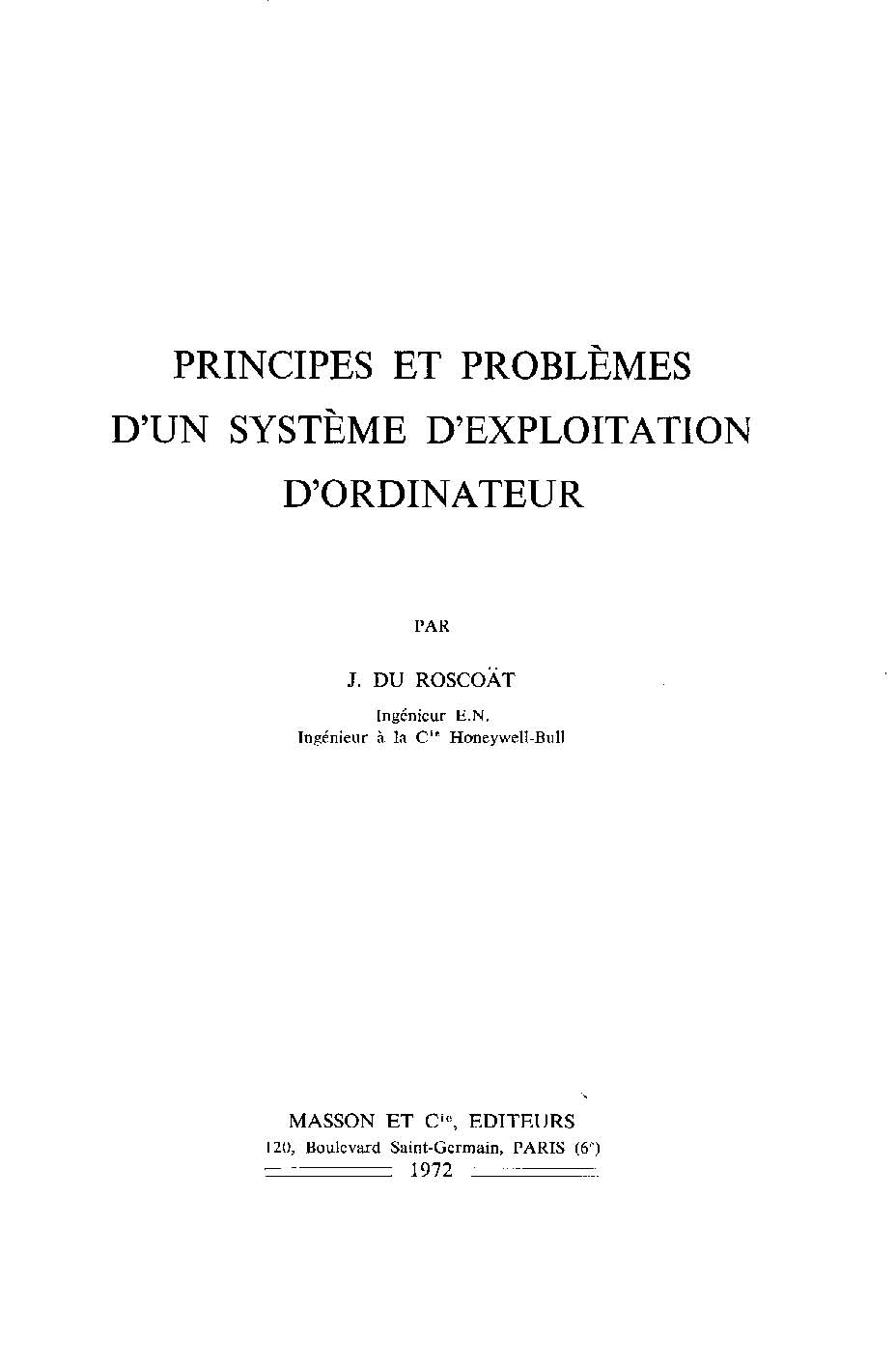 Principes et problemes d'un systeme d'exploitation d'ordinateur