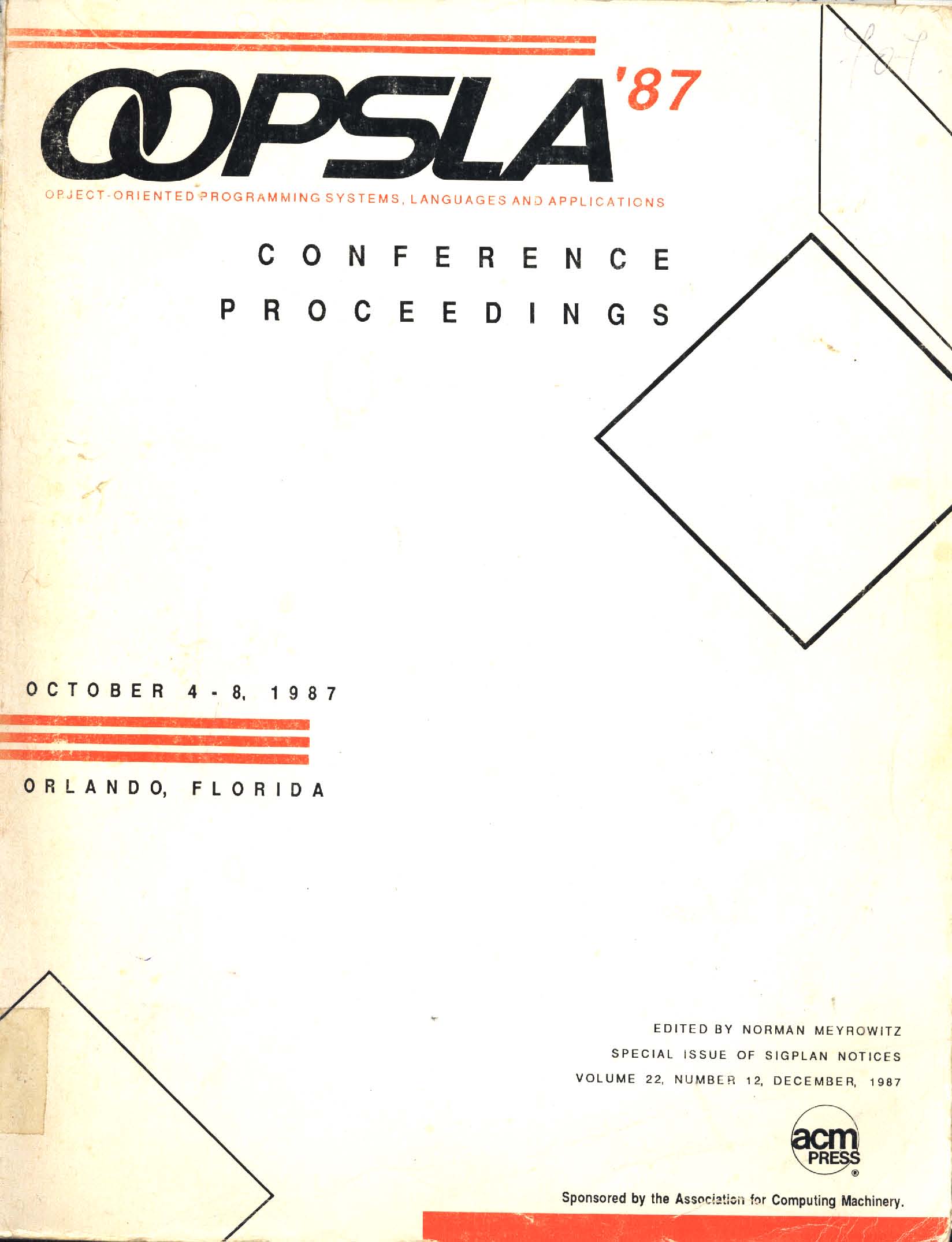 OOPSLA '87 object oriented programmning systems, languages and applications